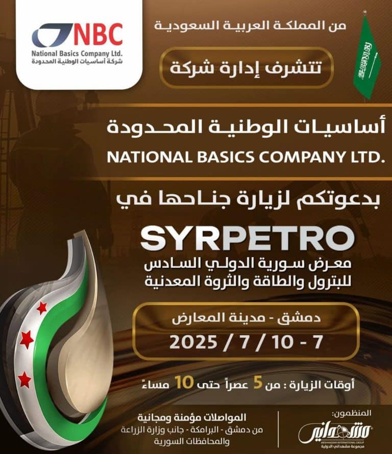 هوى الشام| تشارك شركة بي سيرف إنرجي (Be Serve Energy) الإماراتية في معرض سوريا الدولي للبترول والطاقة والثروة المعدنية – سير بترو 7، الذي...