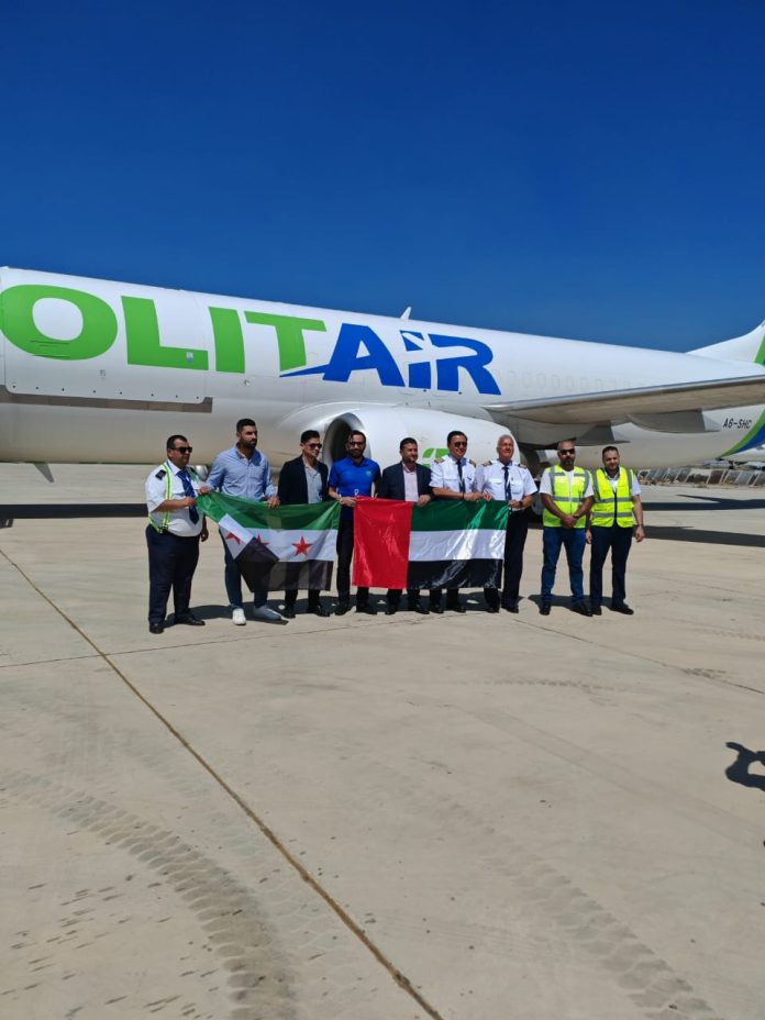 هوى الشام| وصلت إلى مطار دمشق الدولي اليوم أول طائرة شحن تجارية من دولة الإمارات العربية المتحدة، (سوليتير)، بعد انقطاع دام أكثر من 15 عامًا من الامارات، والطائرة محملة ب 20 طن من البضائع التجارية المتنوعة، لزوم احتياجات السوق السورية.