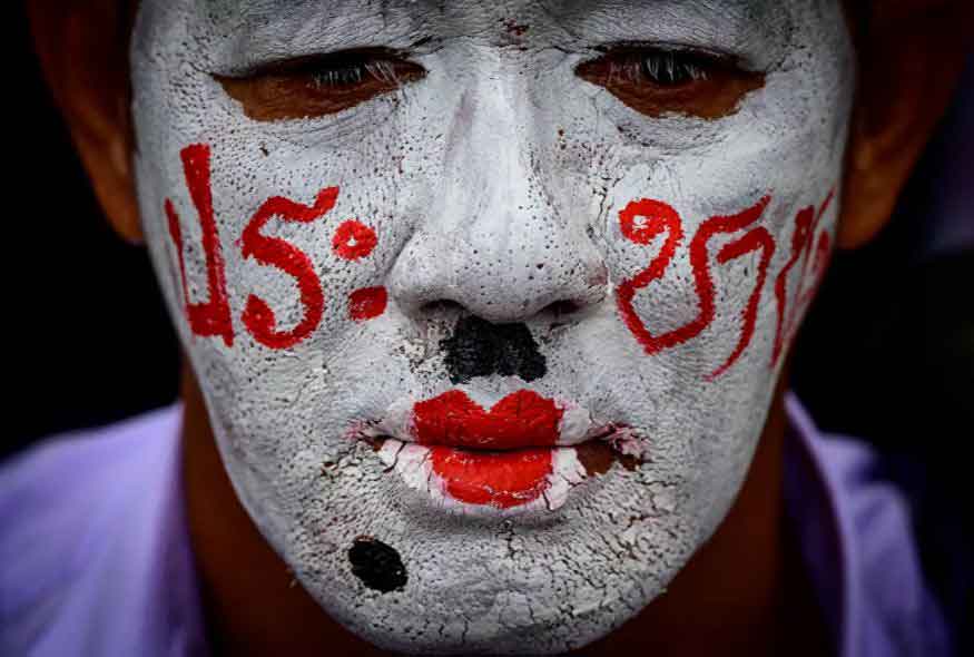 ناشط مؤيد للديمقراطية خلال مسيرة مناهضة للحكومة، نظمتها حركة القمصان الحمر السياسية في بانكوك، 4 أبريل 2021