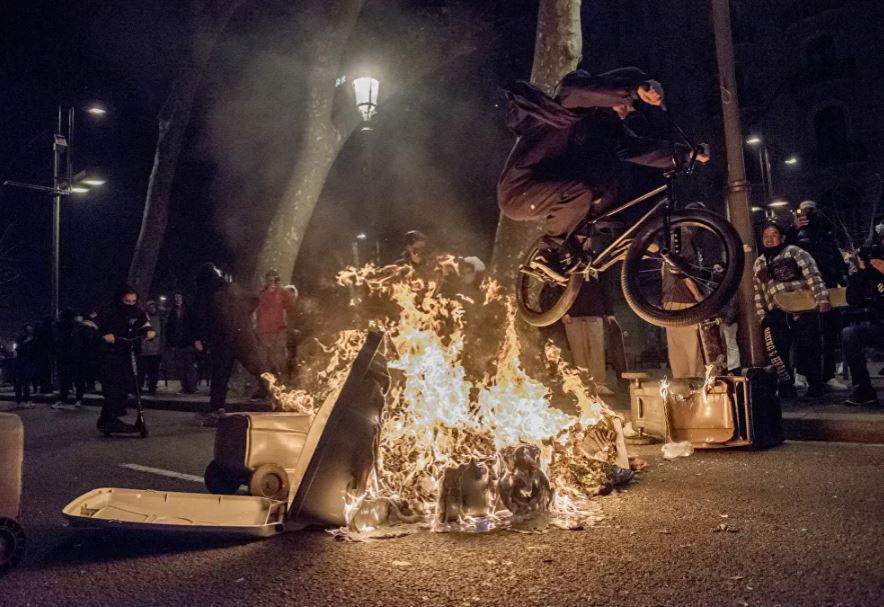احتجاجات وأحداث عنف مطالبة بإطلاق سراح مغني الراب بابلو هاسل، برشلونة، إسبانيا 19 فبراير 2021