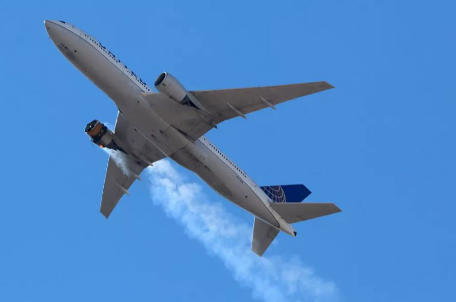 رحلة طيران “يونايتد إيرلاينز”، تحمل 231 راكبا و 10 من أفراد الطاقم على متنها، تعود إلى مطار دنفر الدولي مع اشتعال النيران في محركها الأيمن بعد أن أطلقت “إنذار ماي داي” فوق دنفر، كولورادو، الولايات المتحدة، 20 فبراير 2021