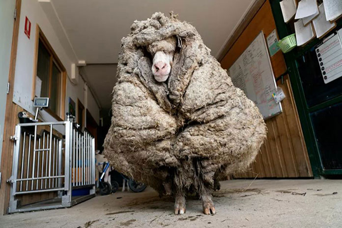 شوهد خروف يدعى “باراك” قبل أن يقطع صوفه السميك في لانسفيلد، ولاية فيكتوريا، أستراليا، 5 فبراير 2021