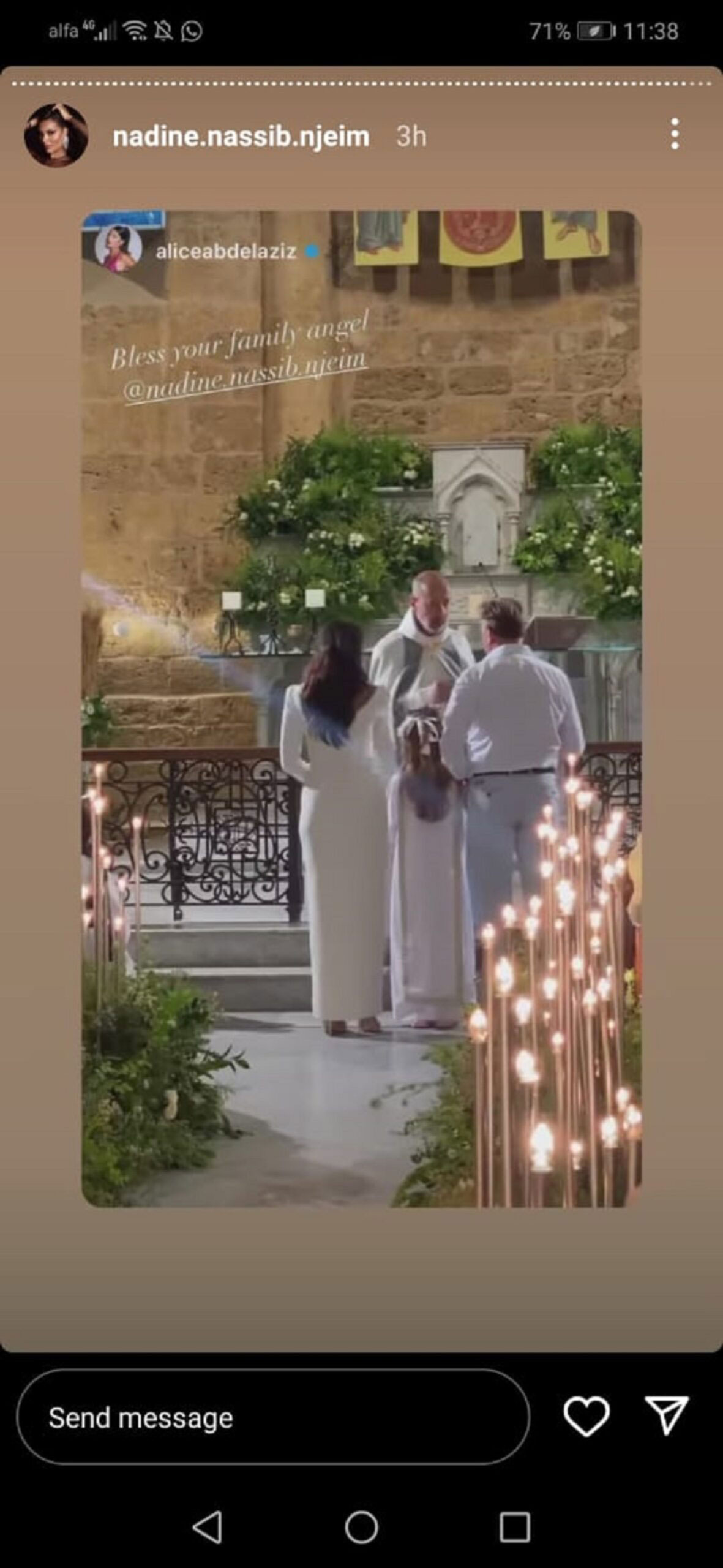 وقد لفت المتابعين ظهور نادين نسيب نجيم للمرة الأولى برفقة زوجها السابق هادي الأسمر، من داخل الكنيسة، وإعتبروا أن هذا دليل على أن نادين على وفاق مع طليقها، وأن ظهورهما معاً يدلّ على أنهما يهتمان بالمناسبات العائلية الجميلة.