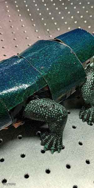 وفي فيديو، زحف الروبوت على أرضيات باللون الأحمر والأزرق والأخضر مغيرا اللون في الحال كي تتفق مع الخلفية.