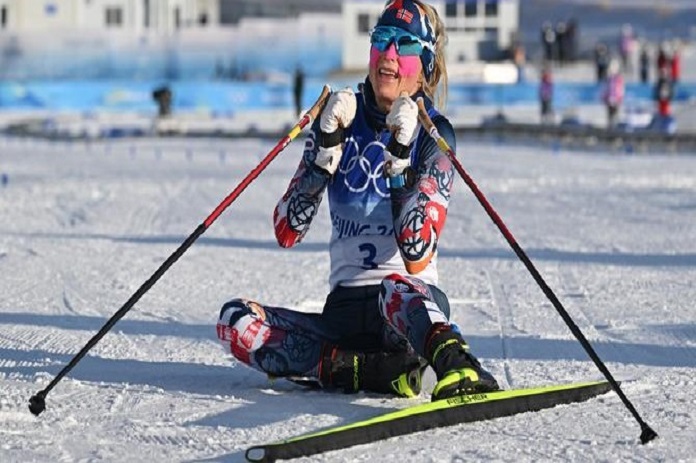 هوى الشام| حققت النرويجية ثيريزي يوهوغ أول ميدالية ذهبية في الأولمبياد الشتوي المقام في الصين وذلك في مسابقة التزلج الريفي للسيدات يوم السبت (7.5 كم + 7.5 كم)، بزمن قدره 44:13.7 دقيقة متفوقة على اللاعبة ناتاليا التي تشارك تحت راية اللجنة الأولمبية الروسية بينما آلت الميدالية البرونزية للنمساوية ستادلوبر.