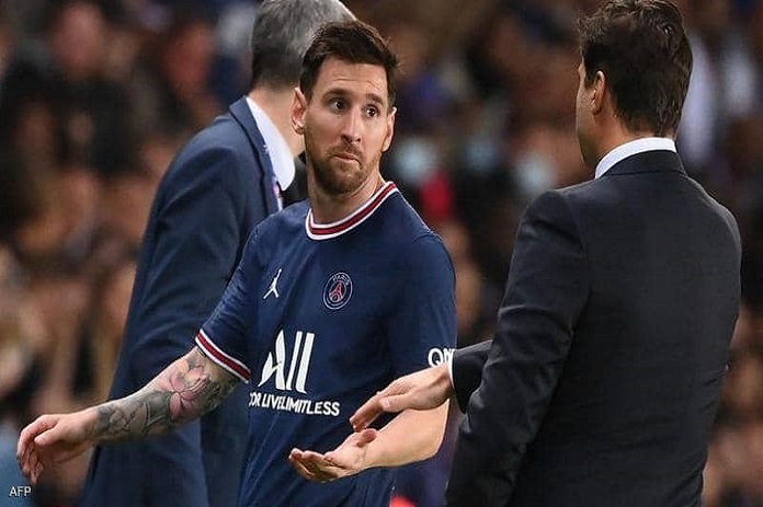 وبدا ميسي مذهولا عندما استدعاه المدرب ماوريسيو بوكيتينو ليشرك أشرف حكيمي بدلا منه.