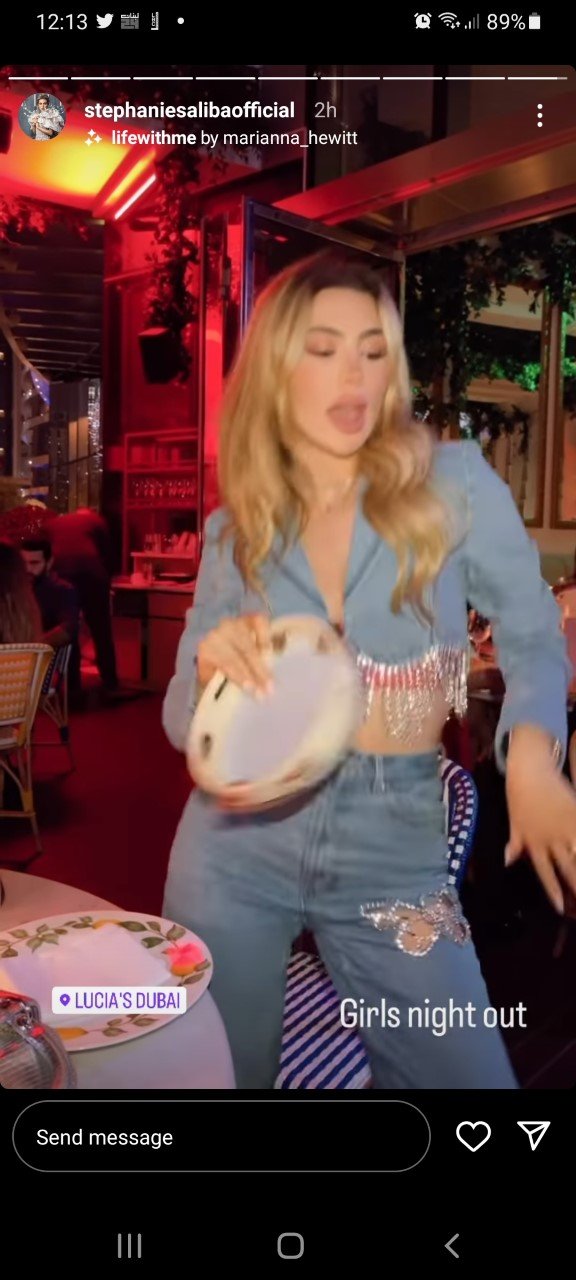ستيفاني موجودة حاليا في دبي وظهرت في الفيديوهات داخل أحد المطاعم وهي ترقص مستمتعة بوقتها.