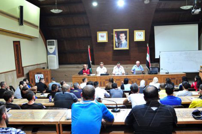 هوى الشام|   قاعة المحاضرات في مقر الاتحاد الرياضي العام استقطبت مئة وعشرة دارسين ودارسات في دورة تأهيل مدربي الملاكمة التي أقامها اتحاد اللعبة بإشراف اللجنة الفنية الفرعية بدمشق.