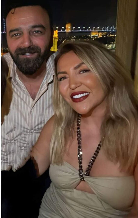 وبدت زوجة سامر المصري، وهي ممثلة اعتزلت التمثيل، بكامل أناقتها إلى جانب زوجها وخلفهم جسر البوسفور في إسطنبول.