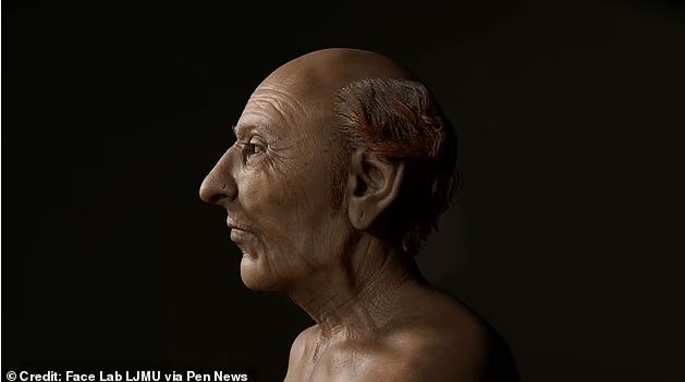 ثم عكسوا عملية الشيخوخة، وأعادوا عقارب الساعة إلى الوراء، ليكشفوا عن وجهه في ذروة قواه. والنتيجة هي أول عملية إعادة بناء علمية لوجه الفرعون، بناء على فحص بالأشعة المقطعية لجمجمته الفعلية.