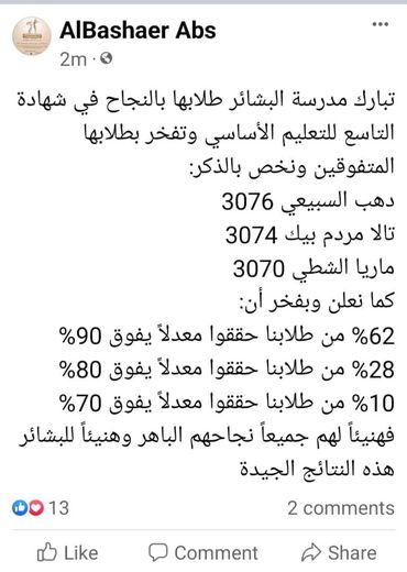 كما نشرت الفنانة رنا الأبيض عبر حسابها الرسمي النتائج الامتحانية لابنها يوشع، معبرة عن فرحتها بنجاحه وتفوقه، حيث قالت: “حبيبي وابني ورفيقي يوشع الروح.. مبروك يا عمري النجاح وعقبال الشهادات العليا”.