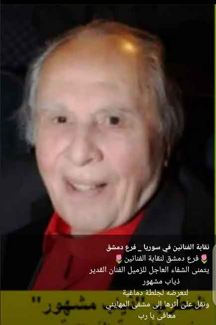 هوى الشام| نقل الفنان السوري ذياب مشهور إلى المستشفى إثر تعرضه لجلطة دماغية مفاجئة.