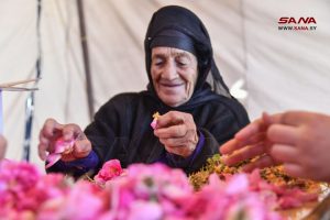 هوى الشام| بحفاوة وبرائحة الورد احتضنت بلدة المراح بريف دمشق، اليوم الخميس، المهرجان السنوي للوردة الشامية بمشاركة أهالي وفلاحي البلدة والمناطق المحيطة الذين عرضوا منتجاتهم من (ماء ورد- شراب الورد- مربى الورد- الورد المجفف) وكل ما تهبه الوردة الشامية المسجلة على قوائم اليونيسكو للتراث الثقافي اللامادي.