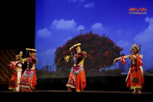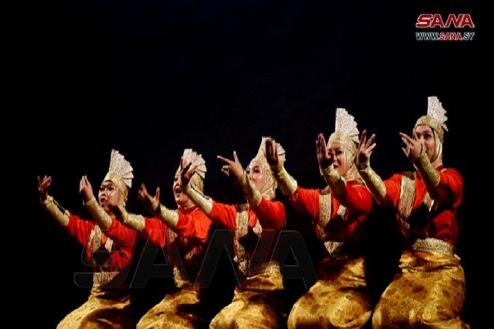 هوى الشام| موسيقا ولوحات شعبية راقصة عكست الثقافة الإندونيسية أدتها فرقة (بوتري كنانة) على مسرح قصر الثقافة بحمص، ضمن أمسية نظمتها وزارة الثقافة بالتعاون مع سفارة جمهورية إندونيسيا في سورية بمناسبة العيد الوطني الـ77 لإندونيسيا.