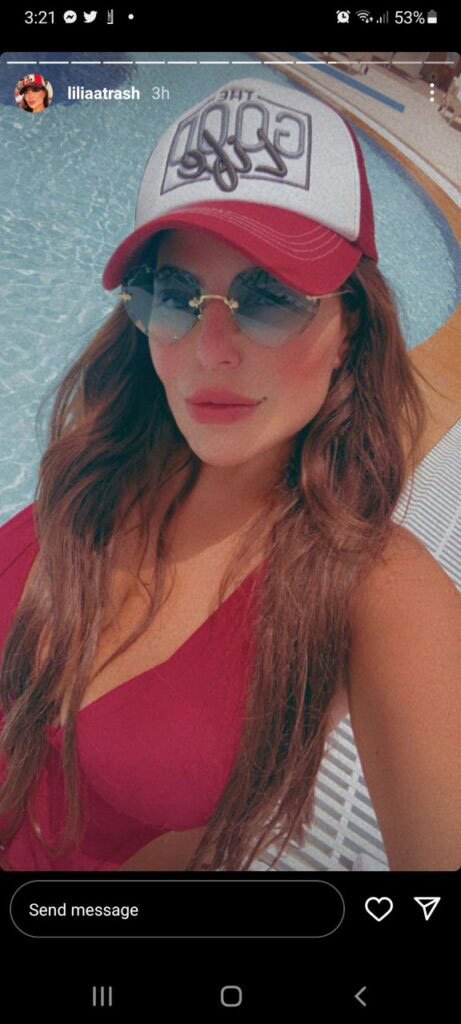 هوى الشام| نشرت الممثلة السورية ليليا الأطرش نجمة مسلسل “باب الحارة” صورة عبر خاصية “الستوري” ظهرت فيها وهي تستمتع بوقتها في حوض السباحة بمايوه أحمر.