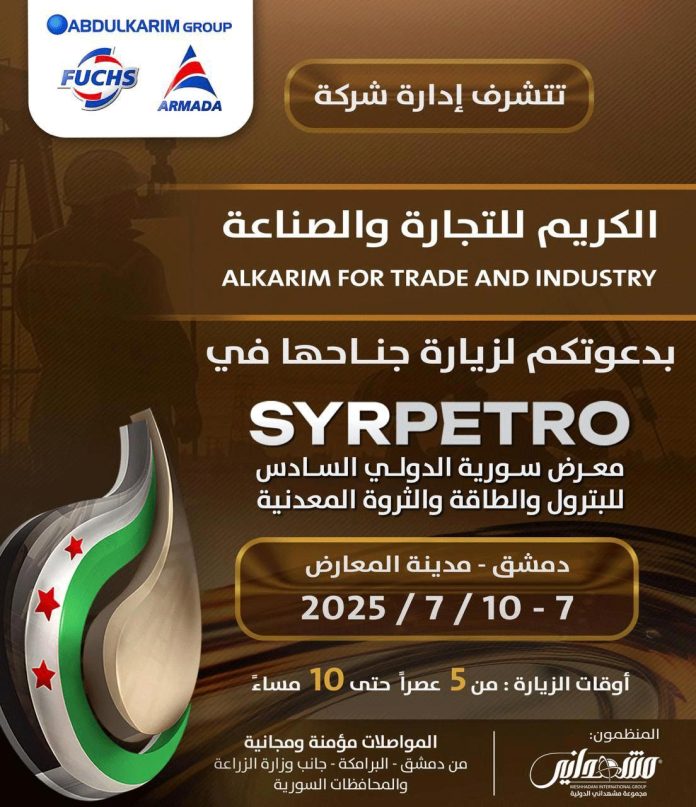 تعلن مجموعة عبد الكريم عن انتهاء استعداداتها لاستقبال زوارها الكرام في جناحها المميز ضمن فعاليات معرض سوريا الدولي للبترول والطاقة والثروة المعدنية “سيربيترو 2025”.