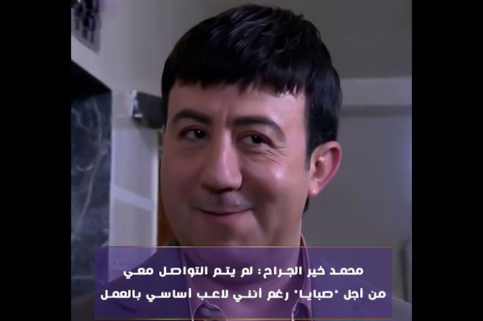 هوى الشام| صرح محمد خير الجراح أنه لم يتم التواصل معه بخصوص انضمامه لمسلسل “صبايا” بجزئه السادس مؤكداً أن شخصية “قدري” هي شخصية أساسية بالعمل متسائلاً فيما إذا تم وضعها بدكة الاحتياط.