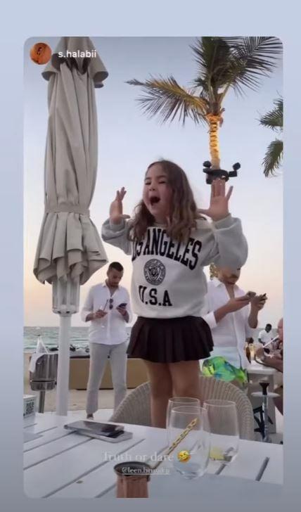 وظهرت ساندرا، ابنة معتصم و لين في الفيديو الذي نشرته والدتها على حسابها عبر انستغرام، وبدت ساندرا سعيدة جدا اذ قالت في المقطع المصور: “أحب أمي، أحب أبي”، كما وثق الثنائي الأجواء خلال جلوسهما.