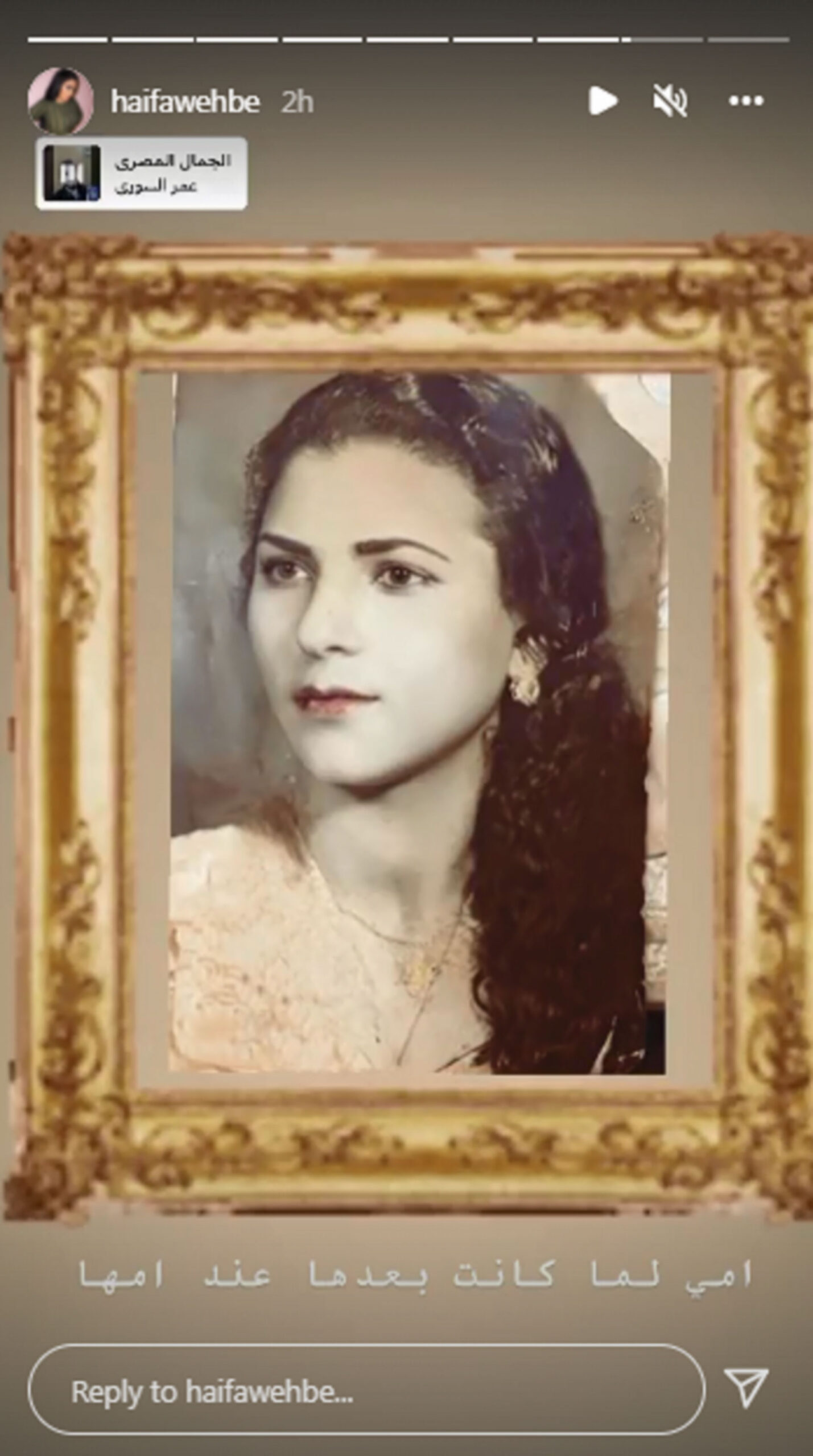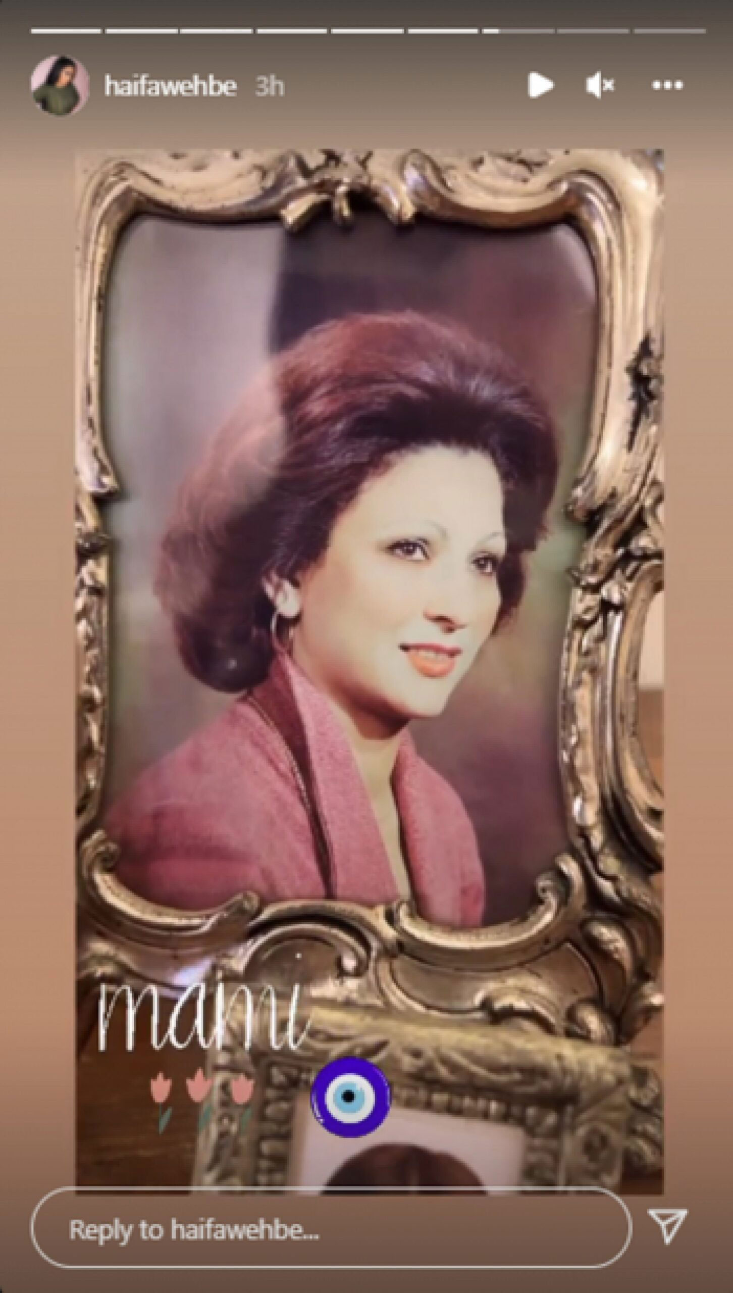 ونشرت وهبي من خلال خاصية القصص المصوّرة (ستوري) الملحقة بحسابها الرسمي في تطبيق “إنستغرام” صورة بدت فيها وهي تتوّجه إلى منزل أمها للإفطار. وتابعت بنشر صور والدتها مع تعليقات جاء فيها: “أمي لما كانت بعدها عند أمها”، و”أمي لما صار عندها نحنا ونحنا صرنا عندها”.