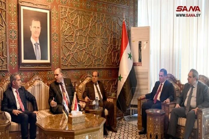 وكان باستقبال الوفد في مطار دمشق الدولي وزير العدل القاضي أحمد السيد، وعدد من القضاة.